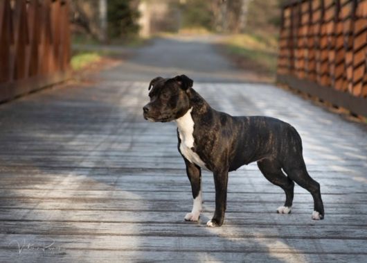 Pearl is a female Staffordshire Bull Terrier. Carefully selected as a great representative of her breed, Christine decided to make her part of their program. Christine has passed Good Dog’s screening process, which involved a review of their breeding practices, environment, and the mental and physical health of their dogs.