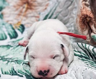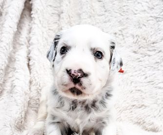 Rey is our homozygous LUA. We are so excited to add her to our breeding program. Rey will produce all LUA puppies. She has passed her eyes and BAER and is awaiting hips and elbows to receive her CHIC #s. She is a very sweet laid back girl. She would prefer to lay on her dog bed with a toy when in the house. Outside she likes a good run but is a very chill for most part girl. We think she will make wonderful pet homes.