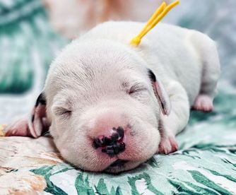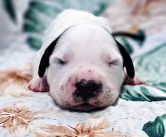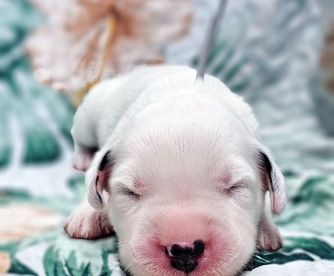 Pending her health test completion. She has passed BAER. She is just awaiting hips and elbows to be done before she will have her CHIC #s. Honey will be out future lemon Dam! She is titled in Novice Trick Dog. She is a spunky girl. She has a personality that is an attention getter. She makes adorable faces that show exactly what she is thinking. She is showing a love for swimming and possibly fast CAT. We hope to add more titles next summer of 2022.