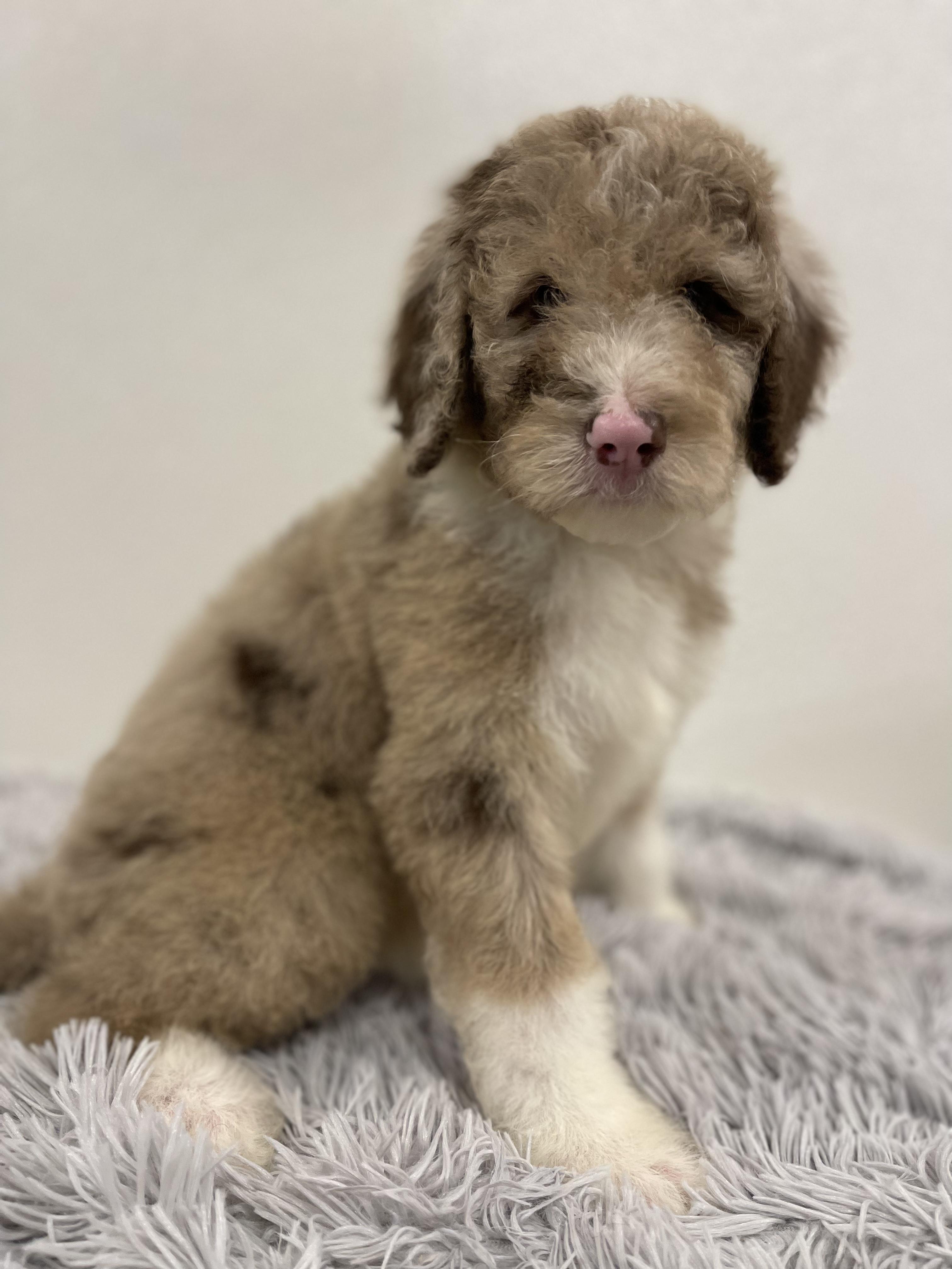 Sheepadoodle puppies include medium and standard sizes. Goldendoodle puppies include miniature and standard sizes. Poodle puppies include miniature and standard sizes. Sizes will vary depending on the parent dogs.