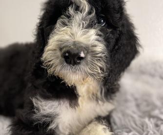 Mazie is a female Sheepadoodle. Carefully selected as a great representative of her breed, Stacy decided to make her part of their program. Stacy has passed Good Dog’s screening process, which involved a review of their breeding practices, environment, and the mental and physical health of their dogs.