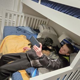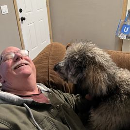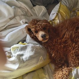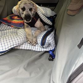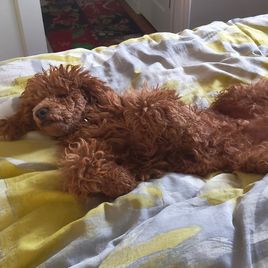 I wanted to say a few nice things about Tanya and Funny Farm Poodles and Doodles, and the pup I got from them. How much space do I get? I have friends in Boise who have a Moyen Poodle and know the breed. I trust them enough that I was willing to drive from Denver to fetch the pup they picked for me, especially after viewing the dog's profile seeing his profile and photos. Ordinarily I might have chosen a rescue, but just having lost my lady friend of three decades to COVID and having had surgery for a subdermal hematoma, I wanted to be the one who was rescued this time! And I have really come to appreciate what a good breeder does for the fee. Ian, whom I have renamed Spanky, is not just a healthy, attractive dog. His personality and behavior are remarkable. He hasn't had a single accident, doesn't chew other than the occasional cardboard box I was going to toss anyway, and has the sweetest personality. Just during the half hour drive from Funny Farm to my friends' home, he and I bonded, and he started to whine when I left the apartment. He was a dream during the twelve hour drive to Denver, no sickness, no accidents. He perched right behind the console in my Blazer and rested his chin on it. He has adapted perfectly to his new home. I let him sleep on the bed; sometimes he will hop off and I'll help him back up later (it’s a tall bed). We live in apartment complex with a large number of dogs--before I got him I was afraid I might be violating my lease by not having one--and they enjoy interacting. They love tussling, but I almost never hear a yelp, and Spanky loves playing with them. He is very comfortable and friendly with humans as well. On July Fourth there were a lot of fireworks in the neighborhood, but he didn't react to them until they were right outside the window, and he barked at them to make them go away. He seldom barks unless someone comes close to the front of the apartment, when his protective impulses kick in. Other than one time when he snagged some salami off a charcuterie board on a kitchen counter (who could blame him), he has been very good about people food. I have learned that he will sniff at mine without stealing it, and he never begs. The name "Funny Farm" is no accident; Spanky can be very entertaining and seems to have a sense of humor. He is very trusting, and has even let me hold him while swinging on a playground swing. His profile says he needs some encouragement trying new things, like stairs, elevators, etc. but he is very proud of himself when he learns them. He can be a bit too proud--when he became comfortable with the automated sliding glass door in the complex, he came through it too fast and rammed his nose into it! Now he's back to being a bit cautious... He loves to be brushed, petted, held, and is very comfortable with touch. Perfect pet for a retired massage therapist. And while he's very affectionate, he doesn't overdue it on the licking--not that that would be so bad, since these dogs are not smelly. His bowel and bladder control are remarkable. He never asks to go out, he just does his business when we do go out. He is an amazing walker. His little legs propel him quite purposefully and quickly when we are on a path, with the cutest bouncy puppy gait, and I am gradually getting him to stay back with me. We even have made the four mile circle of the nearby park, although I wouldn't do that on a daily basis. He is amazingly polite. He never follows me into the bathroom, and whenever I walk by him in the kitchen he jumps up to get out of my way. I know trainers say one should restrict oneself to a few simple commands, but I talk to him all the time as if he were a human. He seems to have a highly developed ethical and moral sense. Yeah, I know he's a dog, but if he does something I don't want, like starting to chew something, the gentlest of admonishments, repeated a few times, seems to dissuade him. No need to yell "bad dog!" Stubborn is not in his vocabulary. None of these characteristics came about by accident. Yes, poodles are a remarkably intelligent breed, but Funny Farm is obviously quite choosy in the pairs they choose to breed, and during those first six months of his life, while I was going through hell, Spanky was obviously in a loving, healthy, structured environment. Tanya Papp is clearly an intelligent woman with a heart the size of a cantaloupe, who loves her pups and takes them very seriously. The results she produces are evidence of that. Her pup’s personality is clearly derived from her own. She is very meticulous, with great attention to detail. She sent us home with a bucket of quality food, which I have continued to purchase, and a swag bag with urine pads (never needed them) poop bags, a half a dozen toys that Spanky already loved, a blanky sealed in a plastic bag to preserve the smell of the litter, a really nice fanny pack with treats in it, a quality leash and collar I have continued to use, a metal water dish with a rubber base, all the requisite paperwork, and copious instructions, things I would never have thought of. Nothing was cheap or a throwaway, all good quality stuff. I didn’t need to buy anything before taking him home. She is a very nice person (to people too!) and very pleasant to deal with. She has been quite willing to entertain questions, and likes to get photos and hear about her pups. I would recommend Tanya Papp and Funny Farm Poodles and Doodles unreservedly. I am completely thrilled with the dog I got from them, and he came along at a time when I really needed a little furry friend. He was well worth the fee and the drive. I would also like to put in a good word for Gooddog, who clearly screen both breeders and buyers thoroughly, and provide a means to make a well-informed choice of puppy, with an extensive profile and photos, and a means to make a substantial purchase with a total stranger in complete confidence. My friends were able to make an informed recommendation based on the website, a