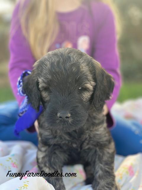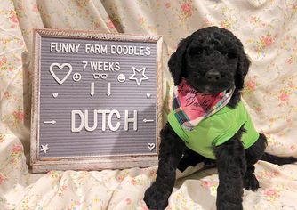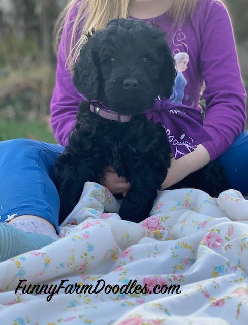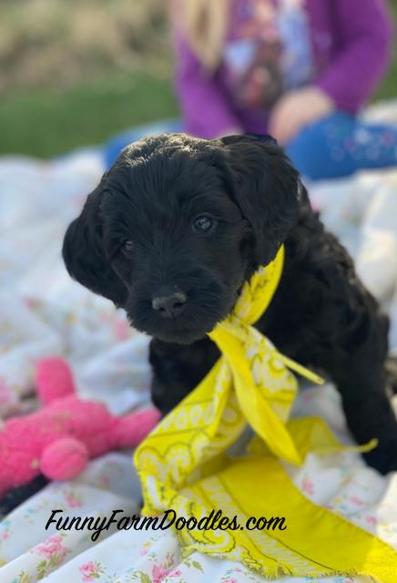 Funny Farm Doodles was very easy to work with. All of their puppies were great and it was hard to select one, but I wanted a black male so that narrowed it down. Nyx (previously Finneas) is a wonderful, playful, very smart puppy and I look forward to introducing him to swimming.