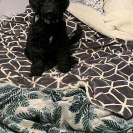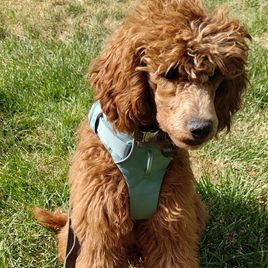 I can't say enough about Tanya's dogs! I've experienced the heartbreak of having a dog suffer with terrible hips, so a responsible breeder who does all the appropriate testing to help ensure I get to enjoy a long healthy life with my dogs is crucial to me. I also look for someone who's dogs have great temperaments that they'll pass onto their puppies. I absolutely fell in love with all of Tanya's dogs, they have great temperaments and personalities, and I was really impressed with how good her intact males were with the puppies, and how all her females get along (which is not always the case with females). I couldn't be happier with my guy! You can really tell the work Tanya puts into the puppies! Harley (now Indy) sits nicely for treats, takes even the most high value treats so gently, and has been rock solid with house training, is calm in his crate, settles nicely even after playing hard, is super calm and just chills for car rides (he goes everywhere with me). Everyone who meets him can't believe what a mellow, well behaved puppy he is! I've told absolutely all of my family, friends and coworkers to look at Funny Farm Poodles & Doodles if they're ready to bring a dog into their lives!