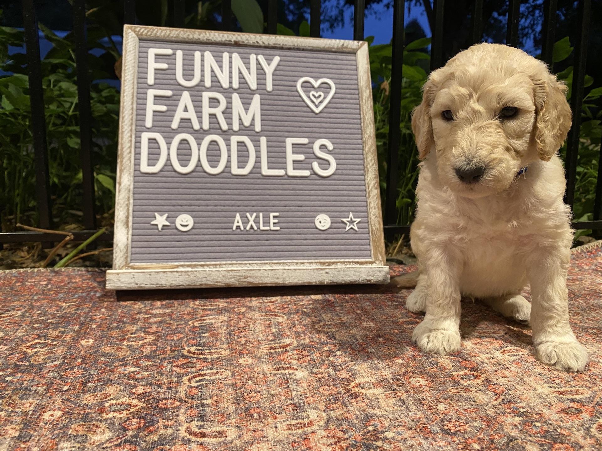 Excellent adoption, working with Funny Farm Poodles & Doodles was really easy. Fritz is a hoot, energetic and plays well. He has settled into the household and is a very happy puppy.
