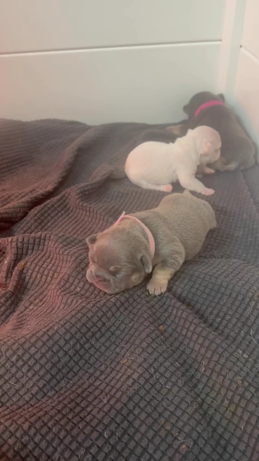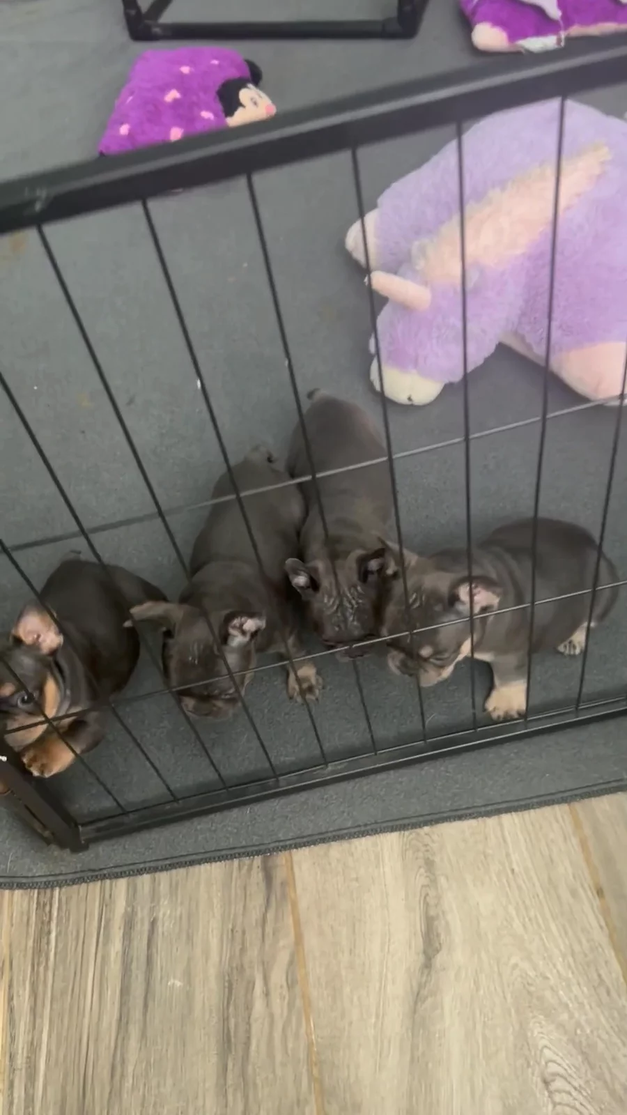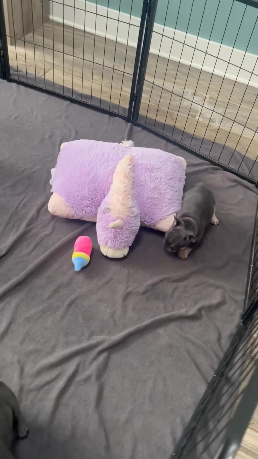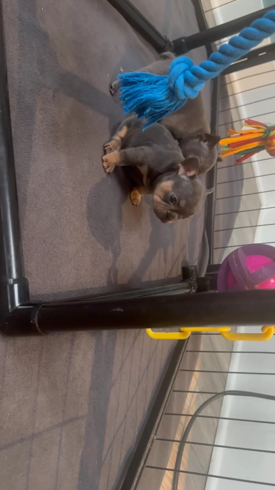 These 5 and 6 week old frenchies are a hoot to watch! Zoomies for 15 minutes, then snoozies for 2 hours! Hahhahaha
