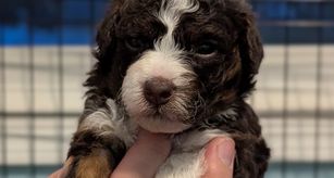 Juno is a female Aussiedoodle. Carefully selected as a great representative of her breed, Mikaela decided to make her part of their program. Mikaela has passed Good Dog’s screening process, which involved a review of their breeding practices, environment, and the mental and physical health of their dogs.