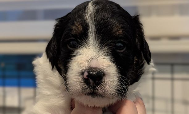 Our puppies include brown and white, black and white, and black tri-color. Colors will vary depending on the parent dogs.