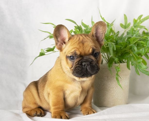 Our Pug puppies are fawn. French Bulldog puppies include fawn and fawn and white. Colors will vary depending on the parent dogs.