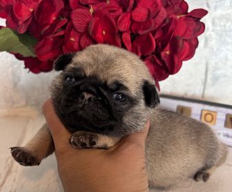 Our Pug puppies include black and fawn. Colors will vary depending on the parent dogs.