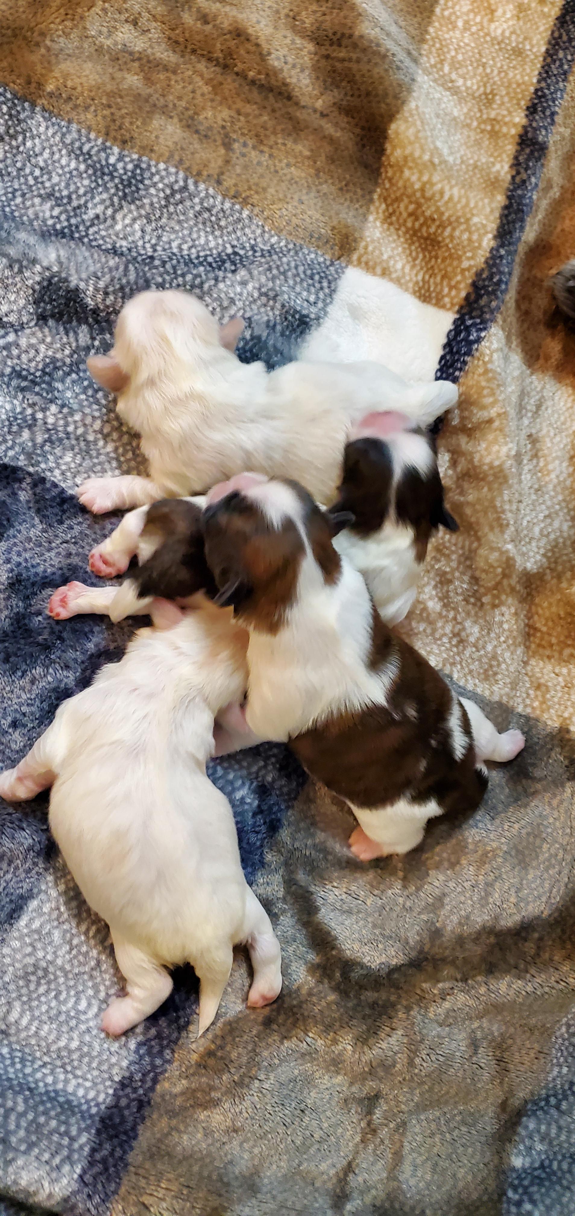 Our puppies include sable and white, tricolor, sable, black and white, and white. Colors will vary depending on the parent dogs.
