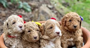 Our puppies include medium and standard sizes. Sizes will vary depending on the parent dogs.