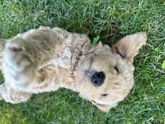 Our puppies include cream, apricot, red, and parti. Colors will vary depending on the parent dogs.