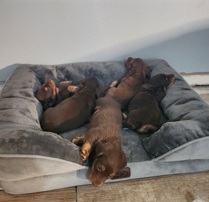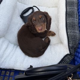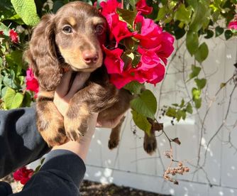 Samantha was amazing! Extremely quick to respond and went above and beyond to share so many pictures of our baby dachshund before we picked him up. Her communication was great and pickup was super easy. It was a true pleasure working with Samantha. She also breeds the absolute sweetest dachshunds you could ever meet! Teddy is the most loving and caring puppy we have ever had. He was so amazing we ended up getting his litter mate for my in laws who is also the absolute sweetest.