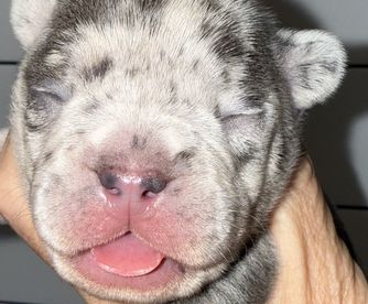 Sunny is a female French Bulldog. Carefully selected as a great representative of her breed, Russell decided to make her part of their program. Russell has passed Good Dog’s screening process, which involved a review of their breeding practices, environment, and the mental and physical health of their dogs.