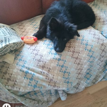 Zona, is a stunning representation of the West German shoreline breed, great temperament, world class pedigree, intelligence, great bone structure. She has a beautiful long coat and the sweetest personality. Her calm patients demeanor makes her wonderful around kiddos. She's AKC registered with all the health clearance, DM cleared, including FCI certified hips and elbows. We are so blessed to have her in our program.