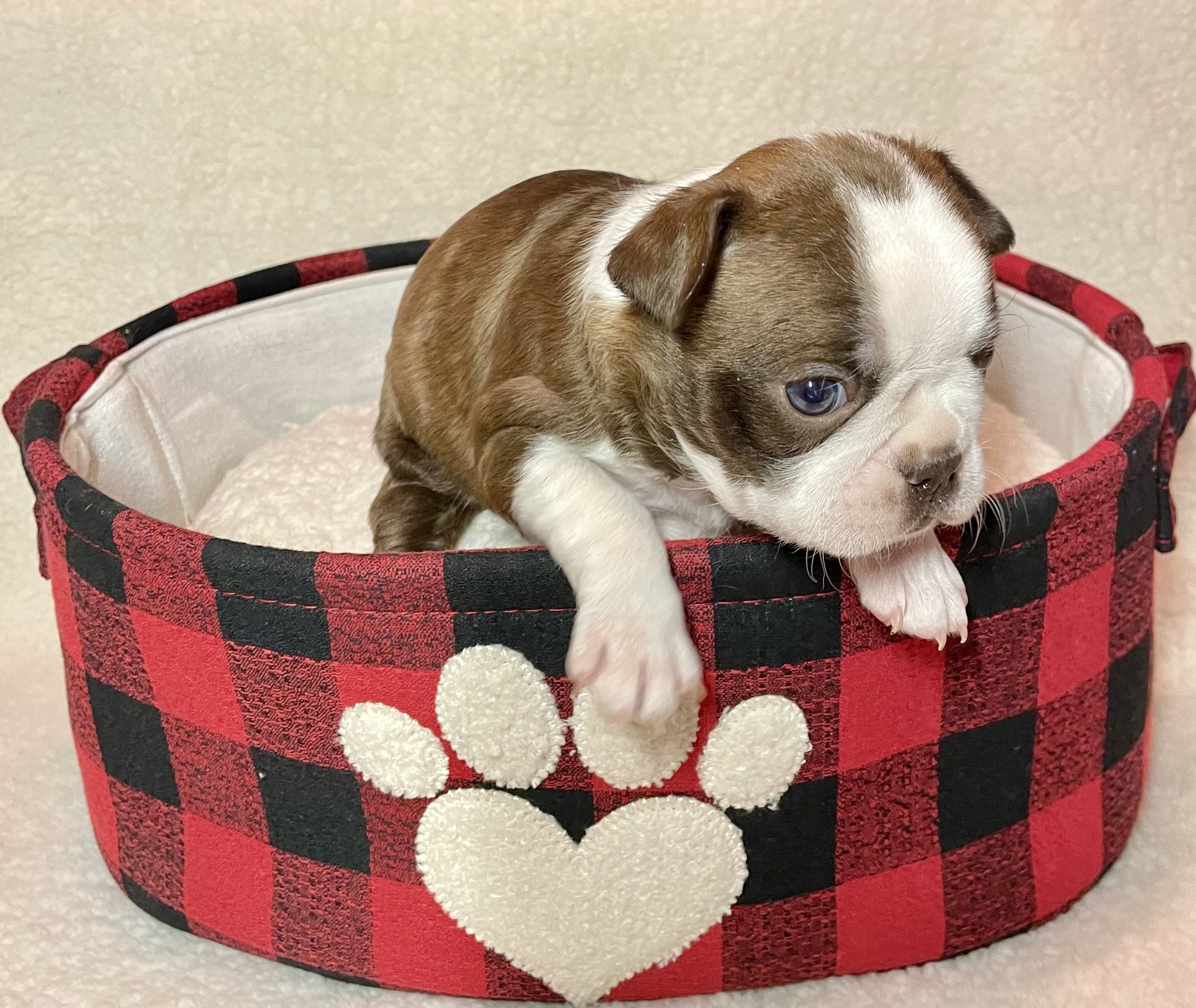 I raise Boston Terriers to improve the breed and hopefully improve someone’s quality of life. I carefully select each home from a prequalified list. It’s not “first come first serve” with my program, it’s finding that perfect Furrever home for our special babies.