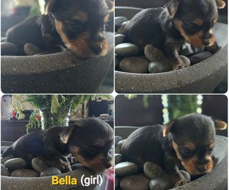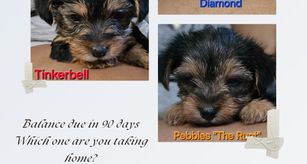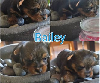 Our Yorkshire Terrier puppies are black and tan. Colors will vary depending on the parent dogs.