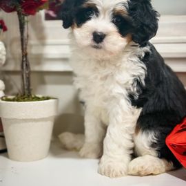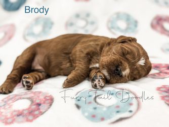 The entire experience with Furry Tail Doodles was exceptional. They are obviously very knowledgeable and caring breeders. They called and texted me regularly, including photos and videos, along with helpful advice, documents, and websites. It was great to meet them when picking up my puppy. He's a very healthy and happy boy. At 8 weeks they had already taught him some commands. Their children sprend time with the puppies which I think helps with socialization.