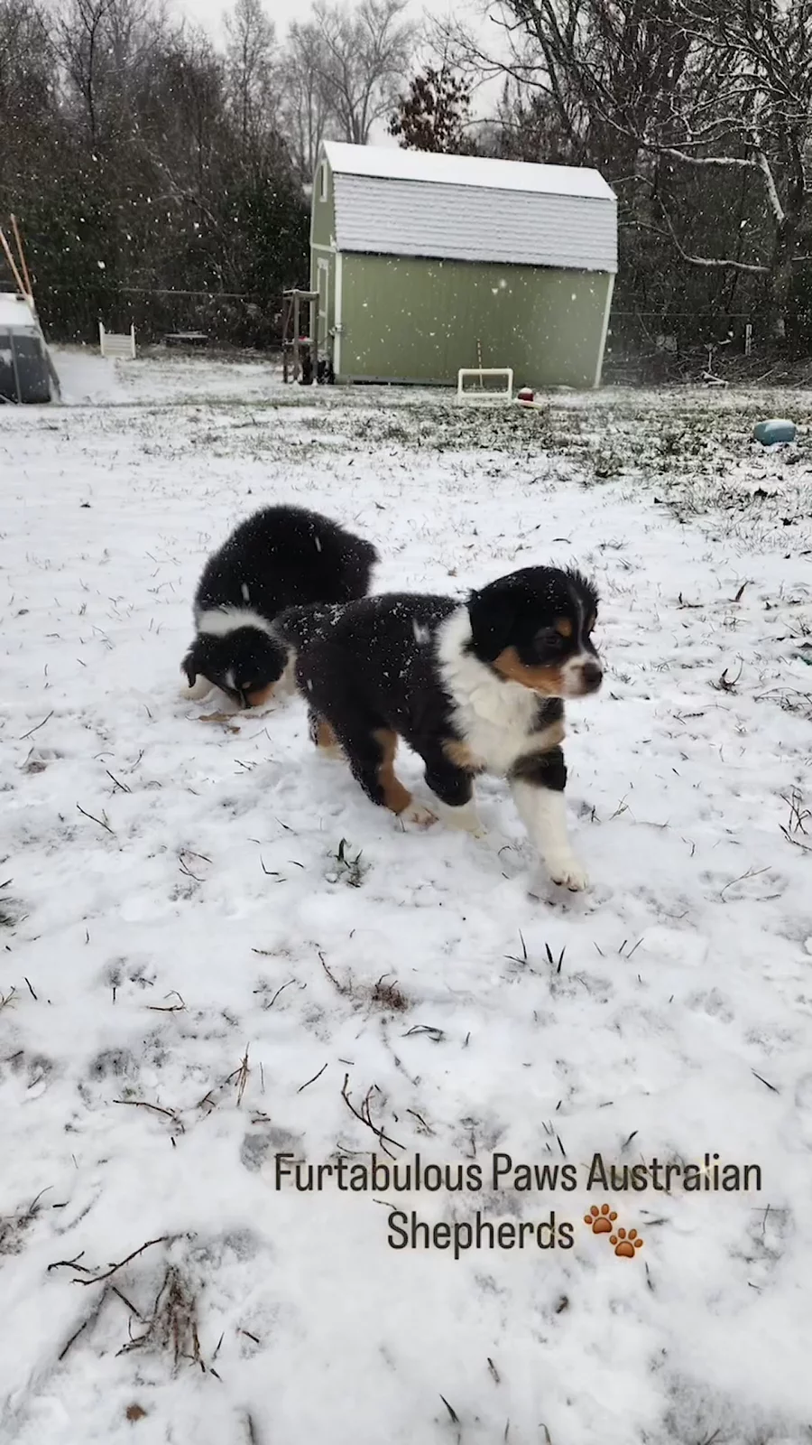 Puppys will be 7 weeks tomorrow. First time in snow and had a blast. All looking for their furever homes.