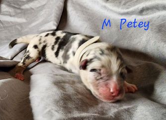 Petey is a very smart and very quick learner. We are almost completely house broken going days without accidents. He sleeps all night and walks into his crate with minimal push. He was leash walking within days of coming home and enjoys walks up to a mile at 12 weeks. He still gets his doggie naps but is active most of the day.