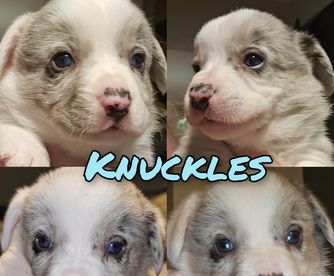 Our Pembroke Welsh Corgi puppies include red, sable, black and tan, white and red, and white and black. Cardigan Welsh Corgi puppies include brindle merle and white, brindle and white, and blue merle and white. Colors will vary depending on the parent dogs.