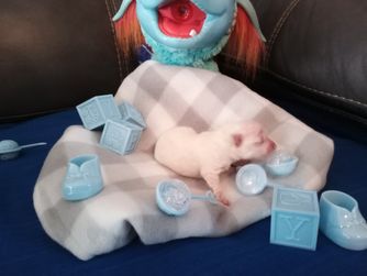 “Our puppies will come to you no sooner than eight weeks old our puppies come with with health certificate registration papers appropriate age shots and worming with veterinary care and of course completely spoiled:-). Deposits are of course applied towards your purchase price and is non-refundable unless something should happen on my end regarding the health of the puppy.”
