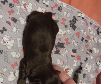 i want to say that is the sweetest man and the dog has been our joy he has put smiles on both my husband and i even chaka our other dog they play love and sleep so great she has had only one or two accidents , vet said that was great to be so so young i love her thank you for everything justin you brought our family so much joy and those green eyes are priceless