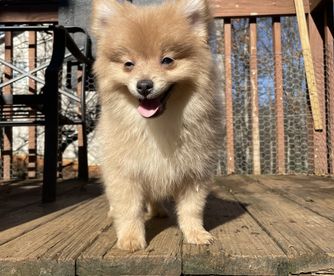 I'm Mylie M., the breeder behind GA Designer Puppies located in Cartersville, GA. We are a family owned breeding business. We breed purebred Pomeranians :) Depending on the parents they can be 4-10 lb once full grown.