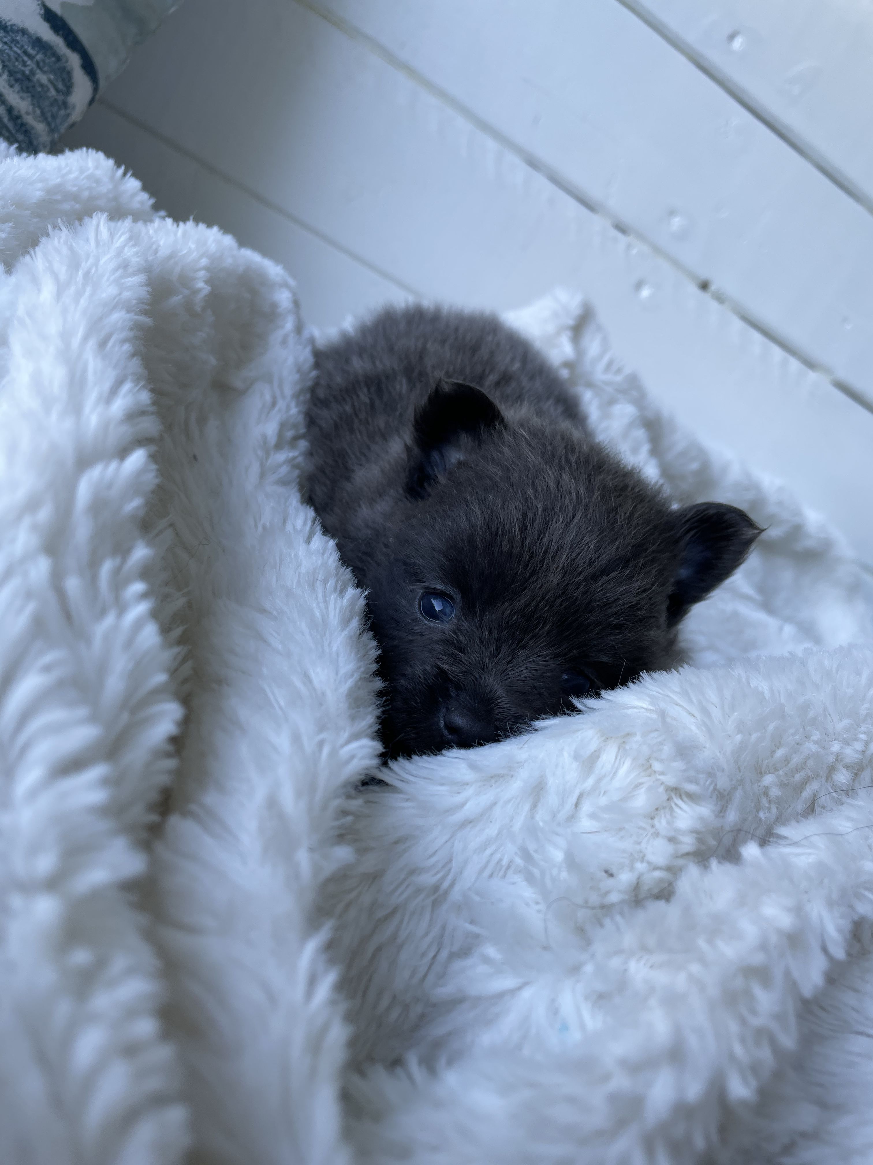 Pomeranian puppies include blue, cream sable, and orange sable. Colors will vary depending on the parent dogs.