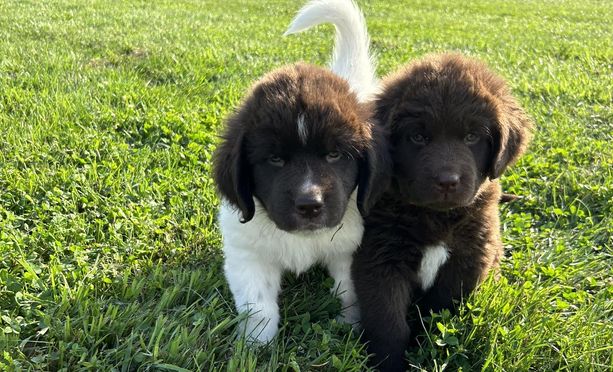 Mama Pebbles is a 3 year old sweet as pie Newfoundland. She has had all of her genetic testing. Her OFA scores are hips excellent, elbows normal, and heart normal. Pebbles has a great temperament and is a little shy at first then is your best friend. She absolutely adores my three children and follows them everywhere if her mama (me) isn't around that is. She has been the best first time mama to her 4 chunky babies.