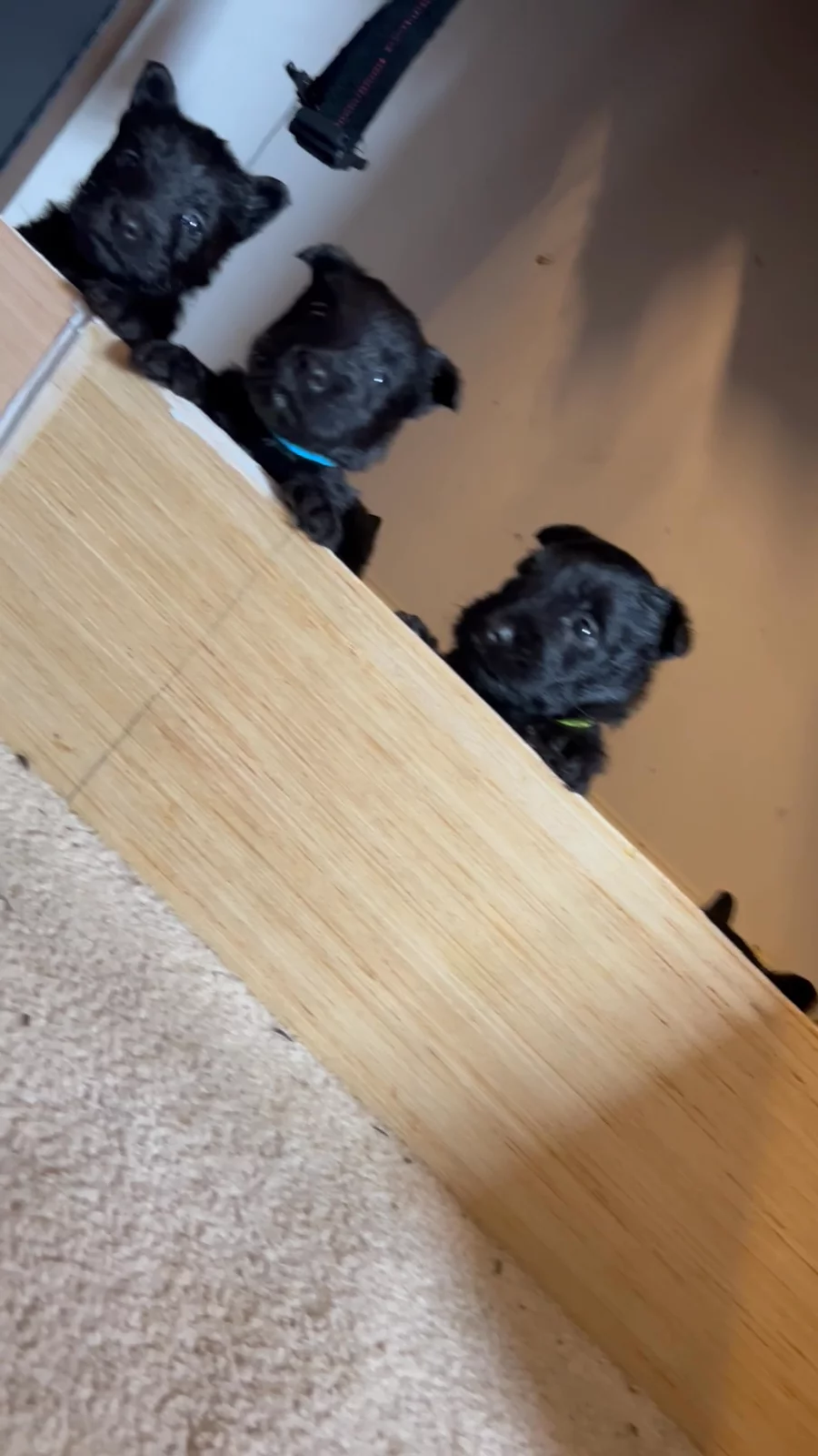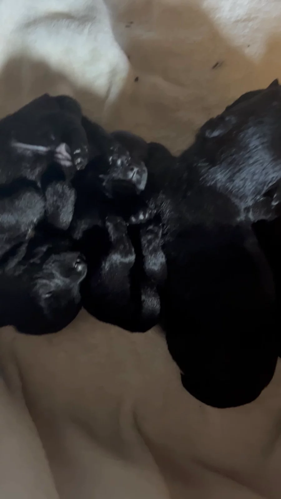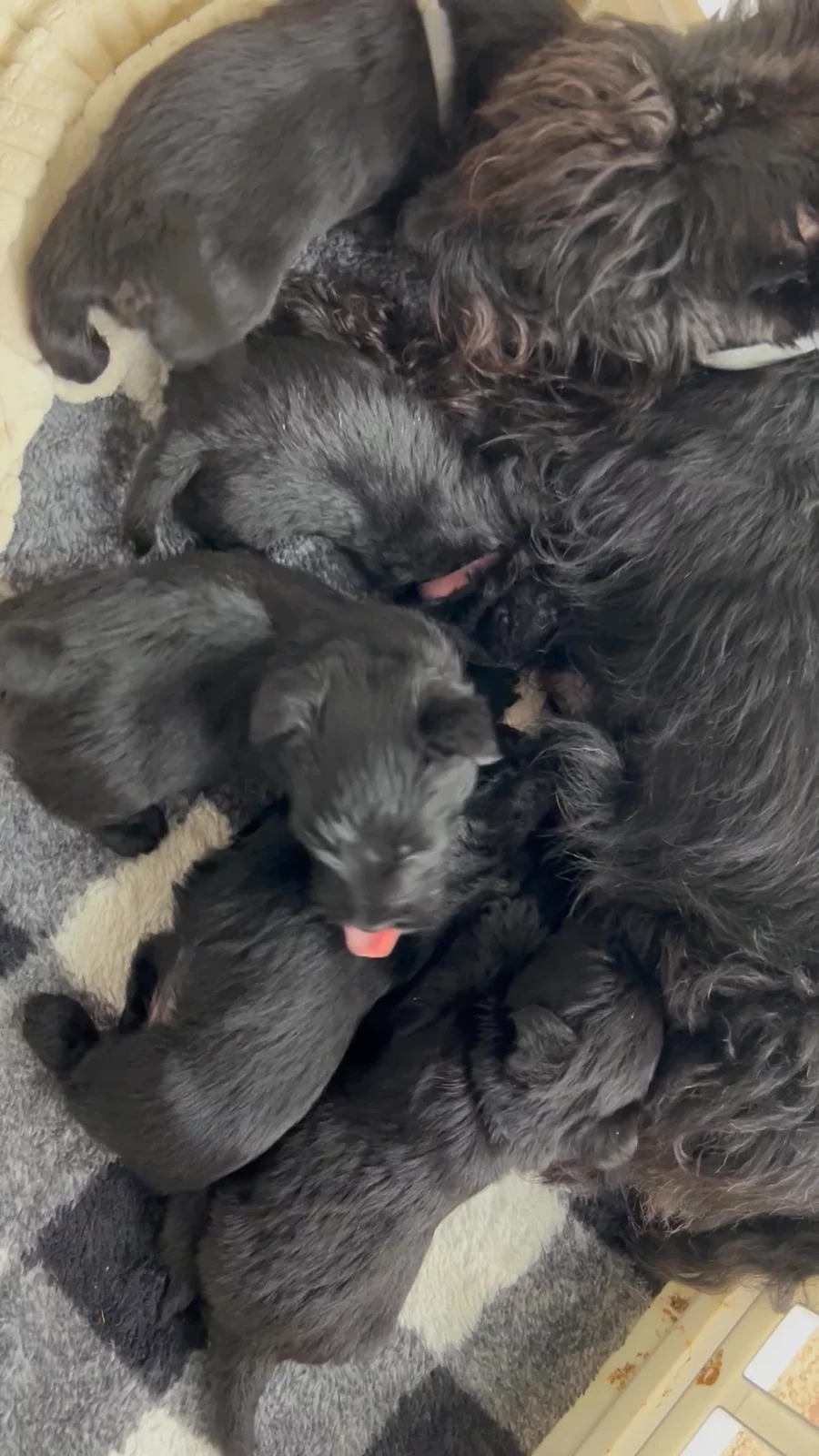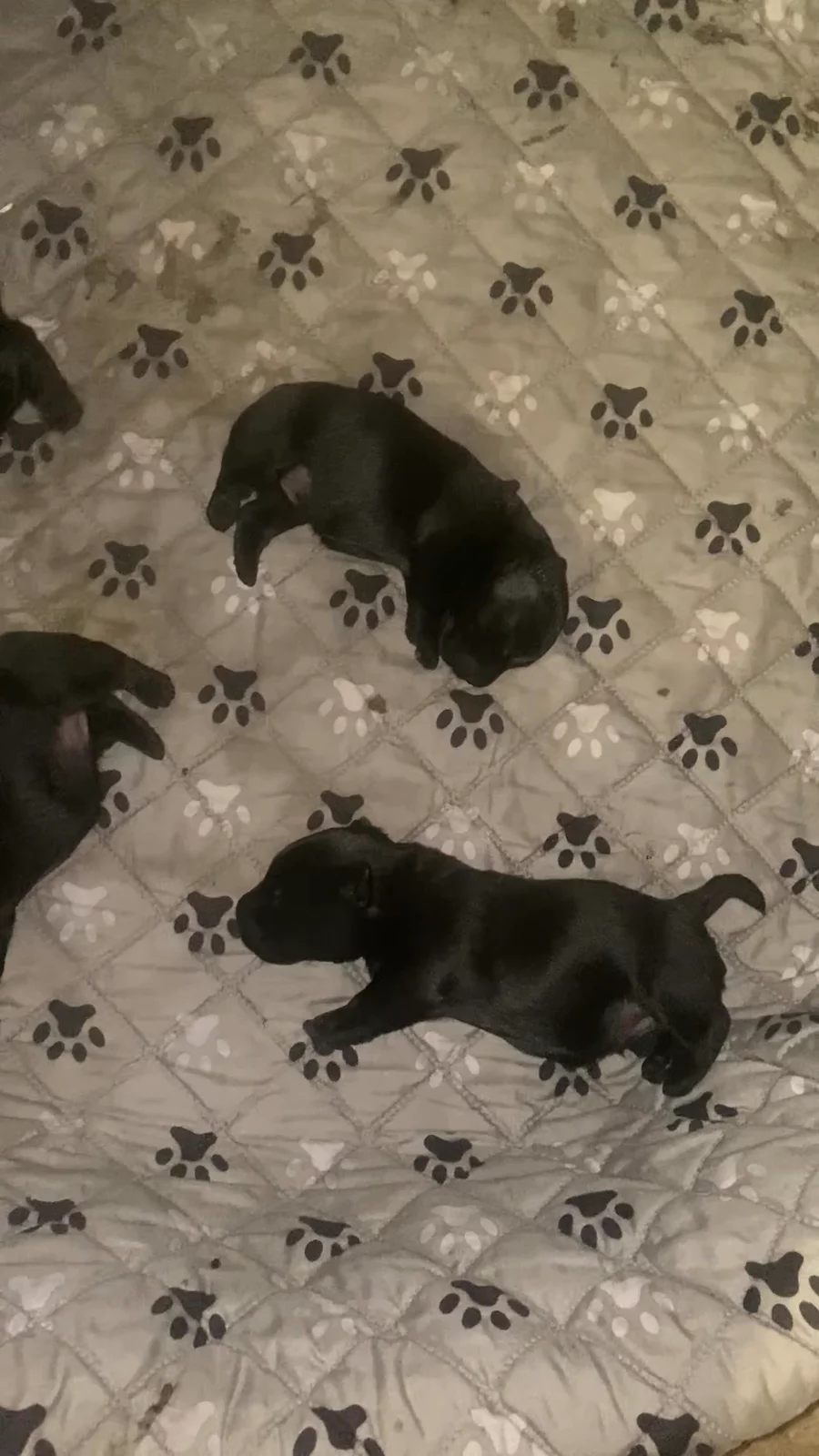 Puppies at 4 weeks. They get excited when they see me. Mum is still feeding them 100%. They are getting playful and curious.