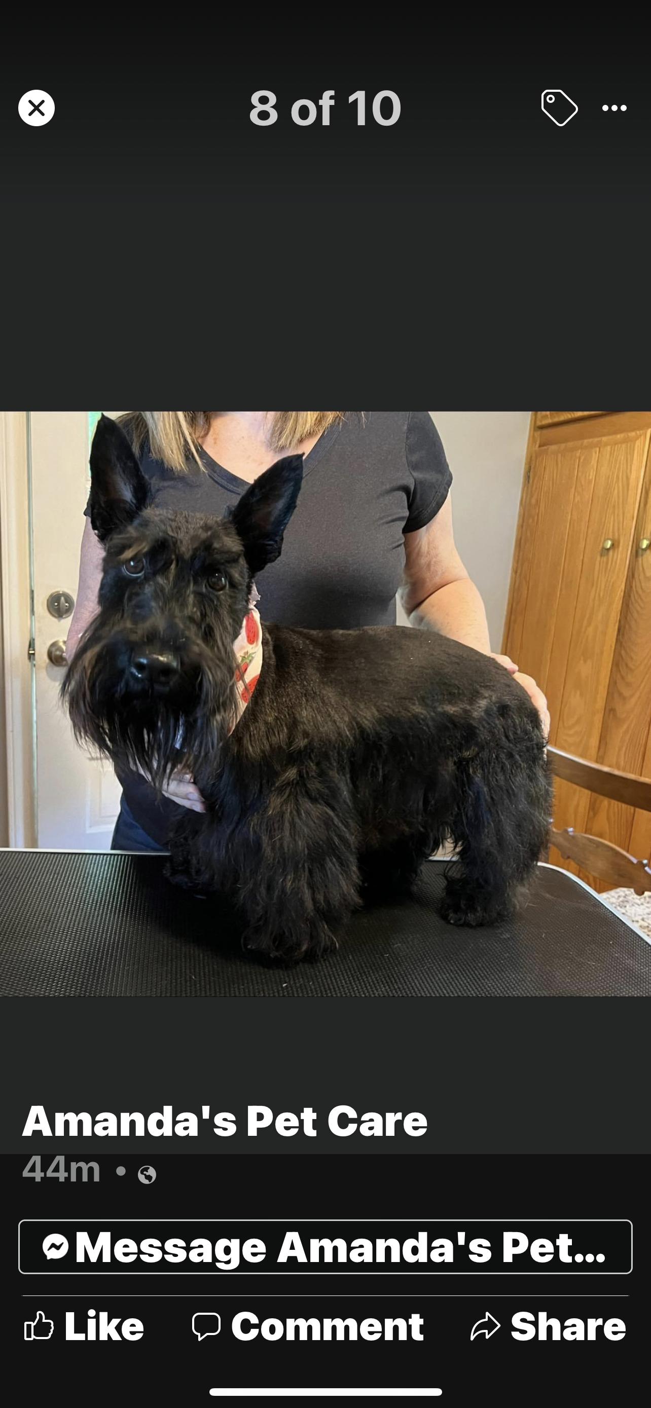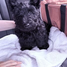Gail is an excellent Scottie breeder! My entire experience with her from start to finish was absolutely top notch. She kept me regularly updated on the mom and, once she was born, my puppy. It was clear that Moka was deeply loved and exceptionally well cared for. I couldn’t have asked for a better experience! Gail also provided a detailed folder with her parents’ DNA reports, Moka’s first vet examination, and vaccination records. The communication and payment process through Good Dog was smooth and very positive. I highly recommend Gail to anyone looking for a well-raised, happy Scottie puppy!