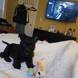 Gail clearly knows her stuff about Scotties and loves each one with her whole heart. Tessa is a happy, healthy puppy that is curious, trusting, and loving. I would recommend Gail and her puppies to absolutely anyone who loves Scotties and cares about ethical breeding. The whole experience was smooth, simple, and efficient, and I loved receiving updates and photos as Tessa grew!