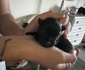 Puppies eyes are open and they are crawling. They will be three weeks old on Wednesday.
