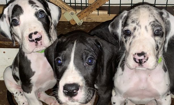 Our puppies include mantle merle, harlequin, and mantle. Colors will vary depending on the parent dogs.