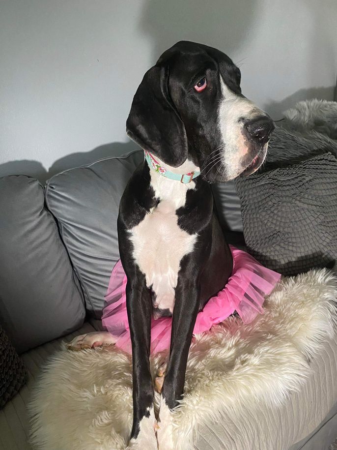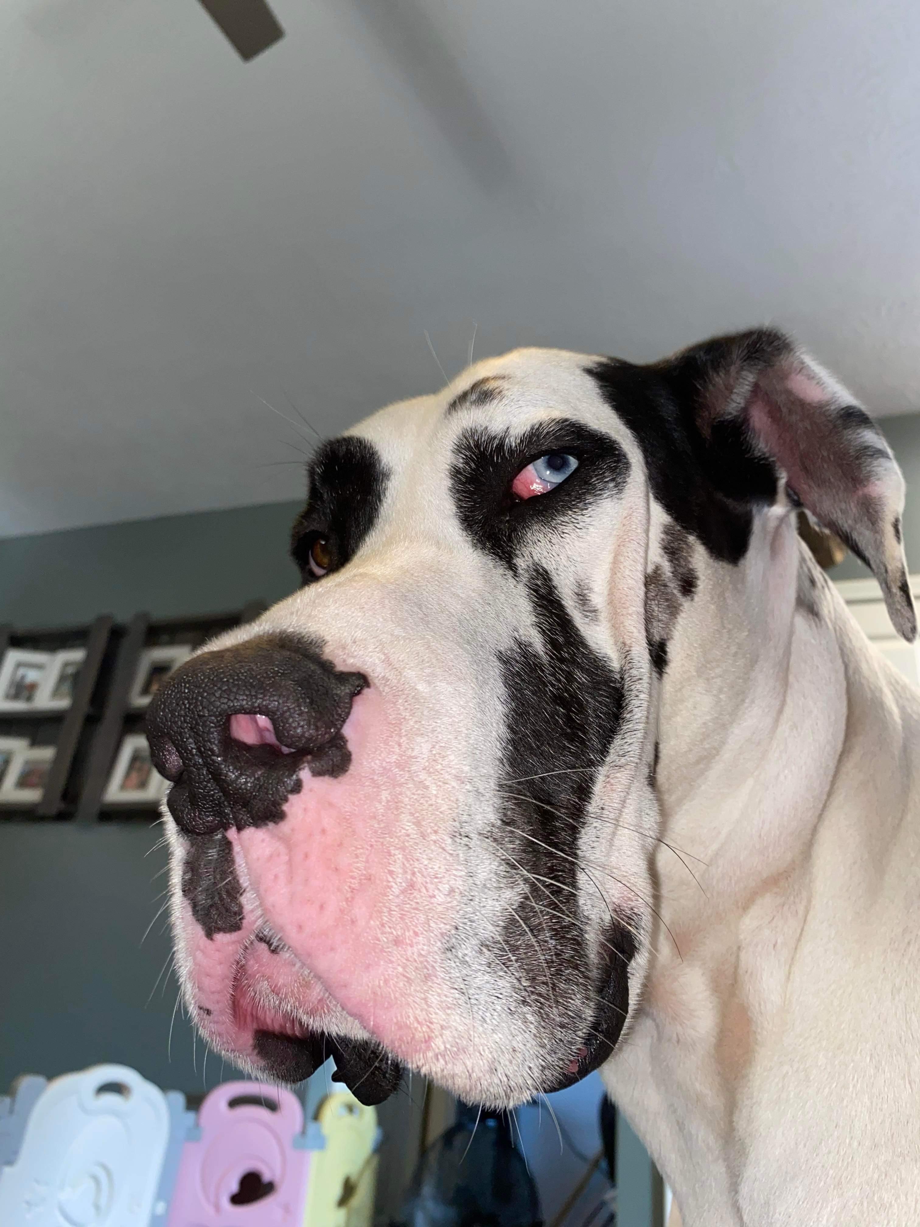 Kylo is a male Great Dane. Carefully selected as a great representative of his breed, Kristen decided to make him part of their program. Kristen has passed Good Dog’s screening process, which involved a review of their breeding practices, environment, and the mental and physical health of their dogs.