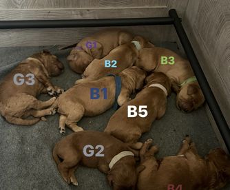 Puppy prices include a $200 refundable deposit and between $1,000 - $1,600 final payment, before taxes & fees.