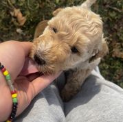 Barbra Jean mini poodle is a female Goldendoodle. Carefully selected as a great representative of her breed, Alexandra decided to make her part of their program. Alexandra has passed Good Dog’s screening process, which involved a review of their breeding practices, environment, and the mental and physical health of their dogs.