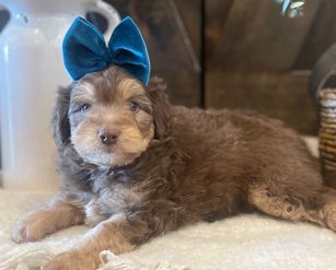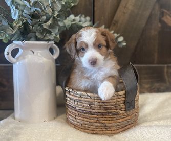 Our puppies include brown and white, apricot, and red merle. Colors will vary depending on the parent dogs.