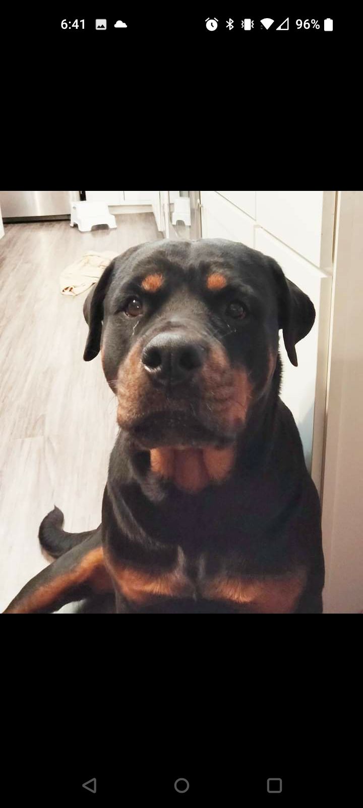 Cuya is a female Rottweiler. Carefully selected as a great representative of her breed, Amanda decided to make her part of their program. Amanda has passed Good Dog’s screening process, which involved a review of their breeding practices, environment, and the mental and physical health of their dogs.