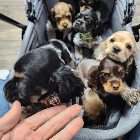 After raising a family and watching our kids start their own lives, my wife and I decided it was finally time to welcome a furry companion into our home. I’ve always had a soft spot for Cocker Spaniels—having owned one in my youth—and the breed’s loving, loyal, and spirited personality stayed with me ever since. That’s what led me to Kellie and Gambill's Cocker Spaniel Cuties. From the very beginning, Kellie was responsive, thoughtful, and informative. She answered every question I had (and there were many!) with kindness and experience, making the entire process feel welcoming and stress-free. I felt like more than just a buyer—I felt like part of her extended Cocker Spaniel family. We were lucky enough to be part of the journey from the day the puppies were born. Weekly picture updates, videos, and even grooming and care advice made us feel connected to Clover before we even met her. We watched her grow, saw her little personality shine through the photos, and counted down the days with excitement. Kellie even took the time to give us helpful tips on food, toys, grooming tools, crate size, potty training, and travel recommendations. It was clear she wasn’t just raising puppies—she was raising healthy, happy, and well-socialized companions, and it showed in every interaction. When we finally met Clover, it was like meeting a long-lost family member. She was everything we hoped for—beautiful, spunky, affectionate, and confident. Now, she’s our constant companion and already a cherished part of our daily life. She will be my adventure sidekick, and a little ray of sunshine in our home. Thank you, Kellie, for making this experience so special. We’re incredibly grateful for the love and care you pour into your dogs. If anyone is considering bringing home a Cocker Spaniel, I wholeheartedly recommend working with Kellie. It was one of the best decisions we’ve made. —Tay Truong Edmond, OK