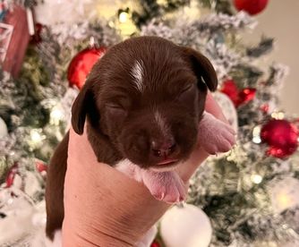 All of our dogs are health and genetic tested before breeding as we strive to breed quality dogs to live long, healthy, and happy lives. All of our pups are raised inside and are handled from birth. They are socializing a lot with other dogs and people during their first 8 weeks of life to ensure an easy transition into their new homes. All puppies go to their new homes at 8 weeks with their first set of shots, dewormer, and a health guarantee.