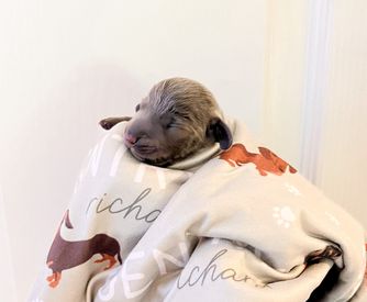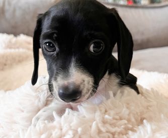 Our Dachshund puppies include wirehaired, smooth, and longhaired coat varieties. Coat types may vary depending on the parent dogs.