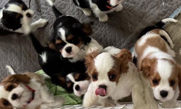 Our puppies include blenheim and tri-color. Colors will vary depending on the parent dogs.