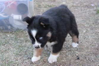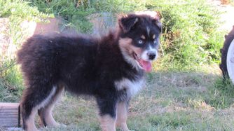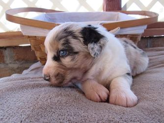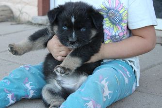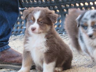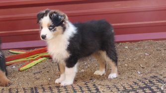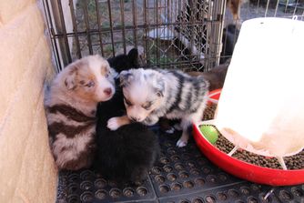Our puppies include black, red merle, blue merle, and red. Colors will vary depending on the parent dogs.