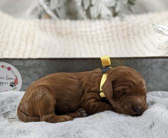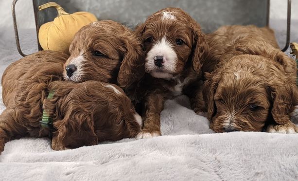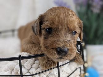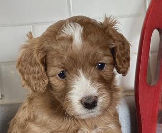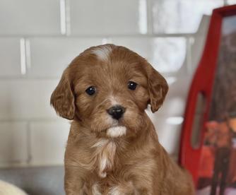 Our Cavapoo puppies include apricot and red. Whoodle puppies are wheaten. Colors will vary depending on the parent dogs.
