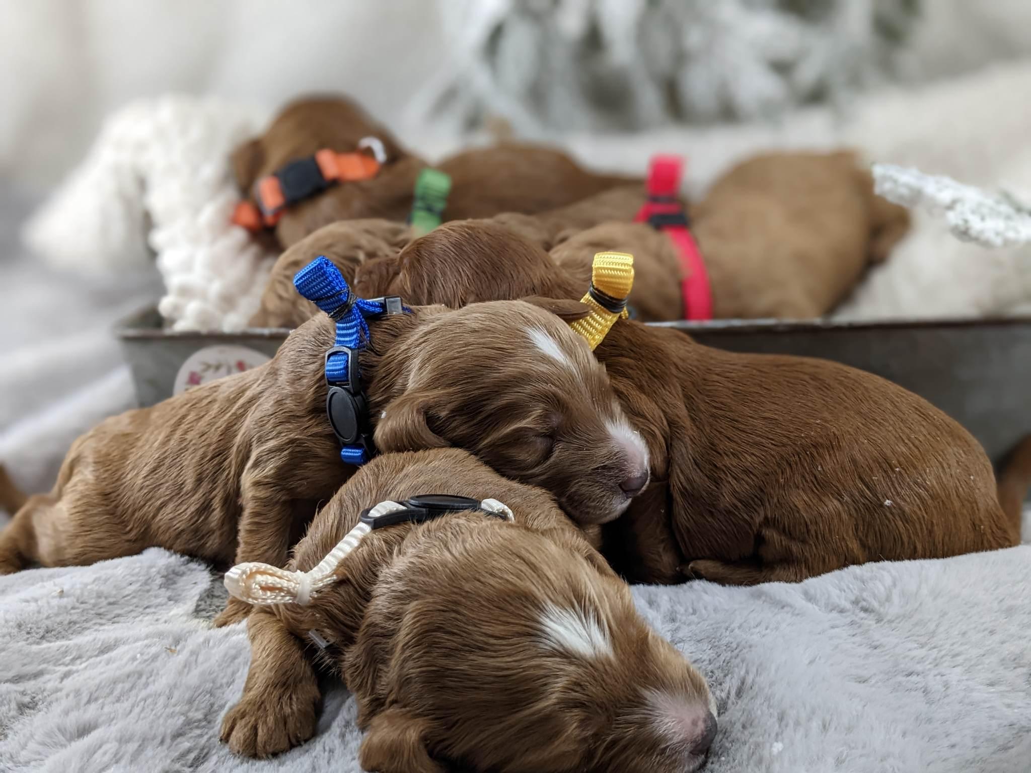 “We take deposits after your puppy has been picked out. This takes place when the puppies are 1 week old.”