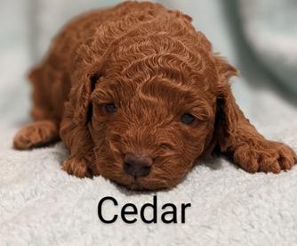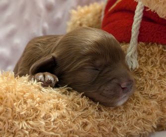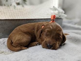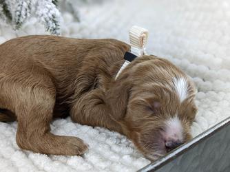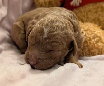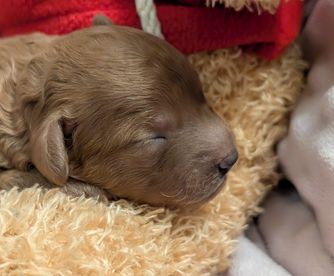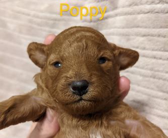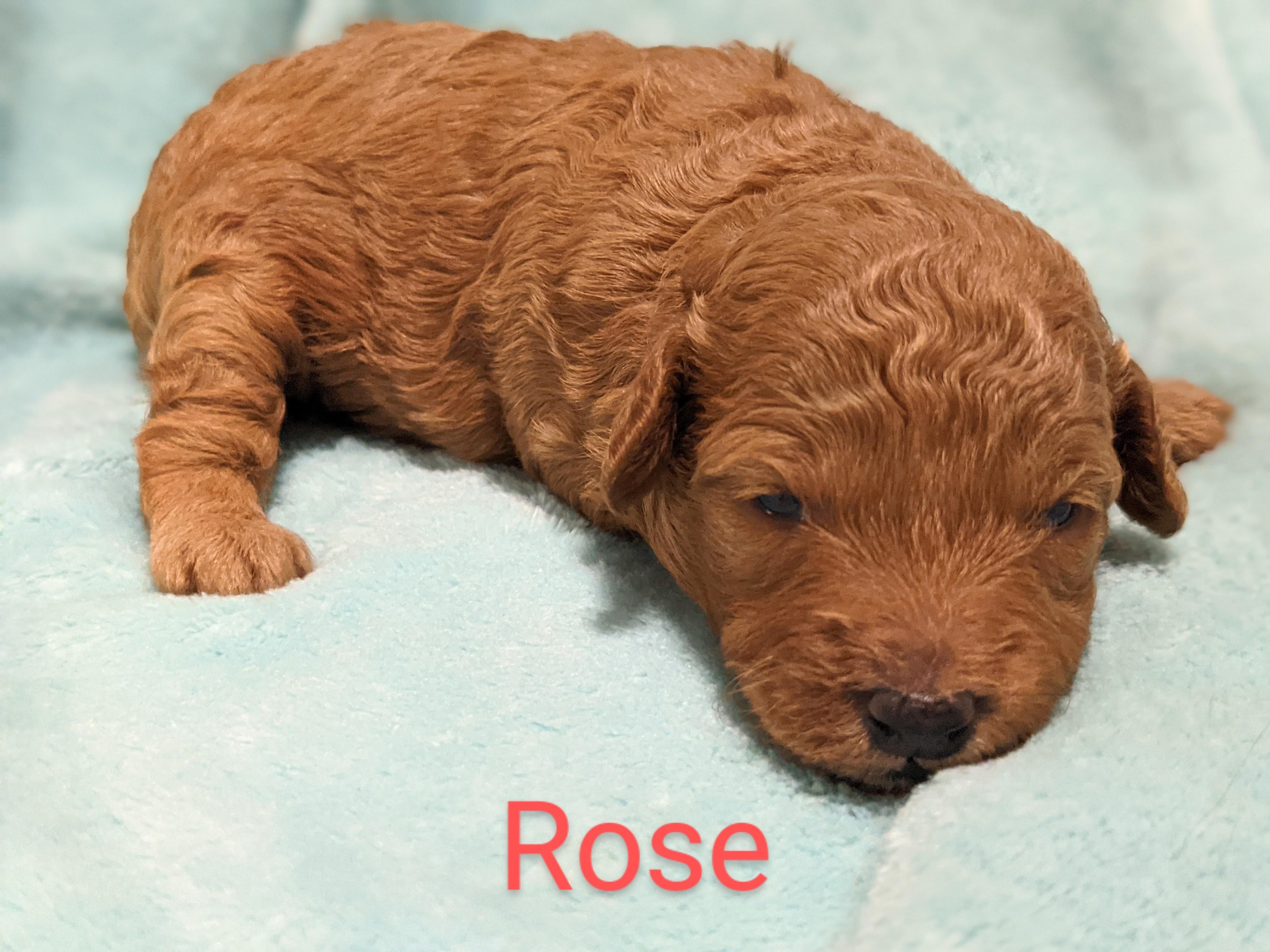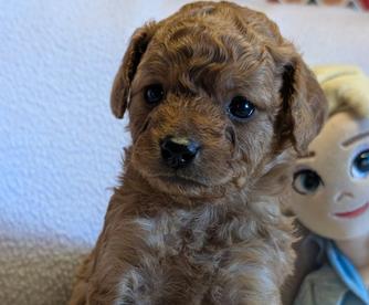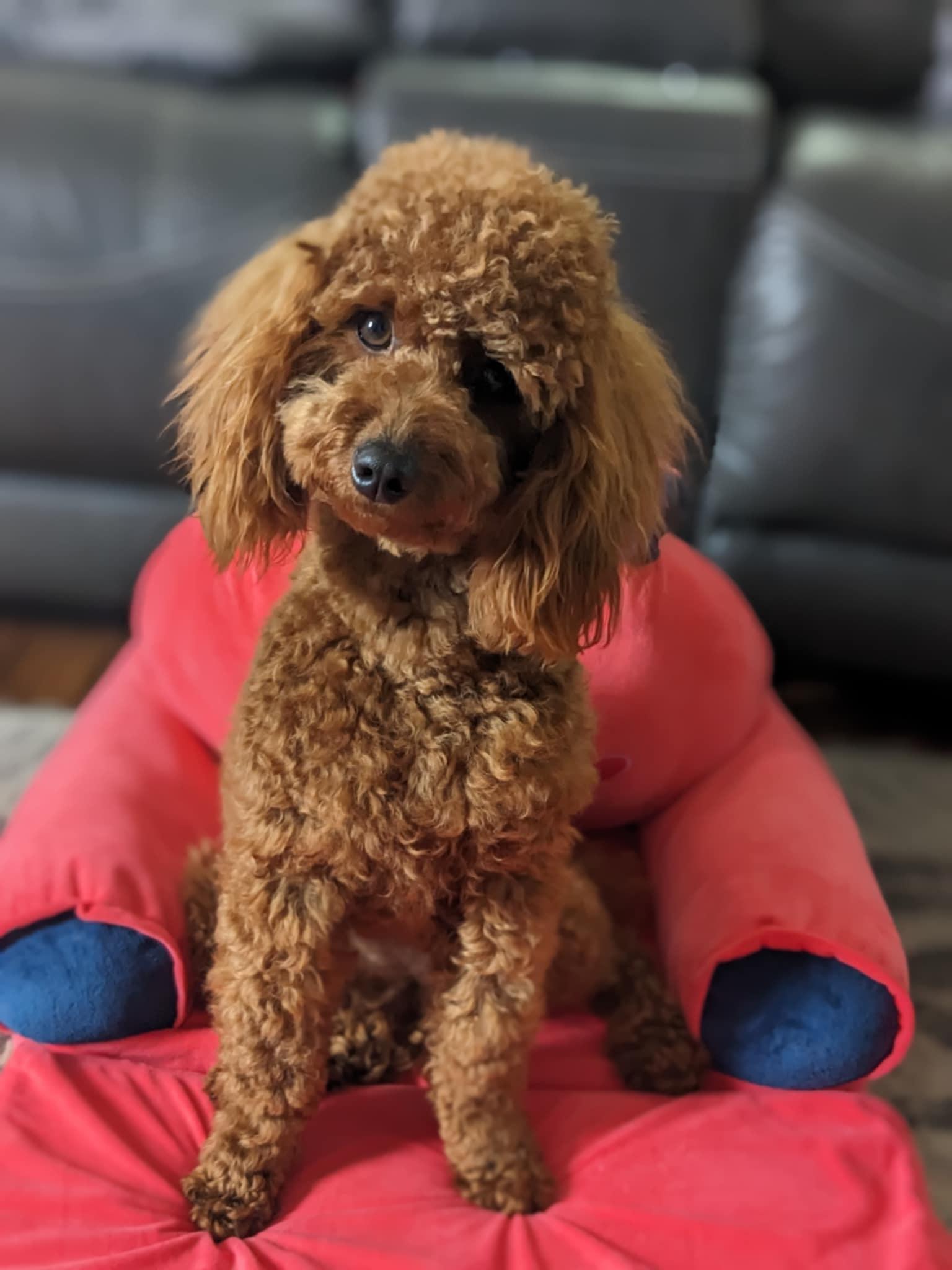 Rilla is a Red abstract purebred miniature poodle. She weighs 7 lbs. She loves going swimming and going for long walks with her humans. She is health tested and cleared of genetic disease.