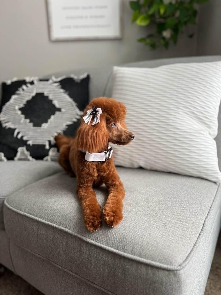 Jewel is a miniature poodle and is 7 lbs. Jewel lives locally, in Morton Illinois.